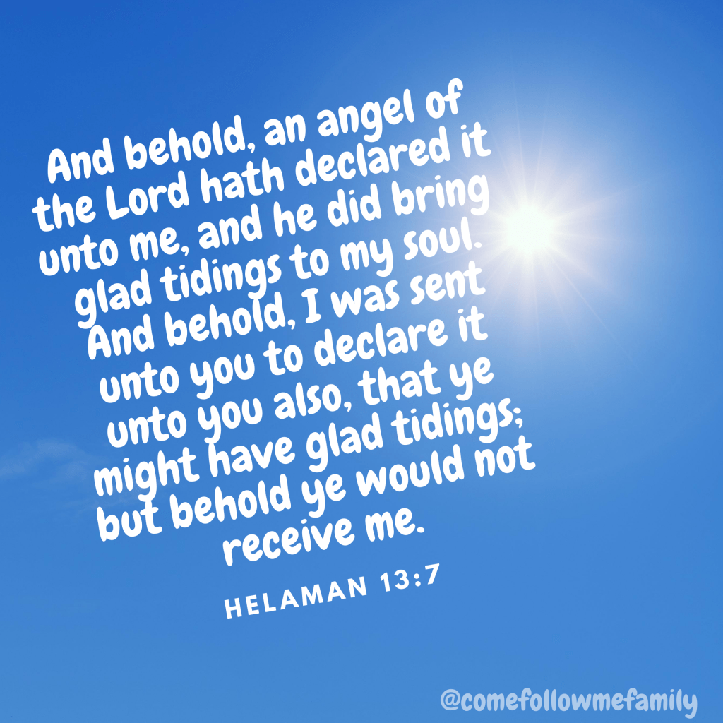 Sing “Samuel Tells of Baby Jesus” (Children’s Songbook, 36).The prophet Samuel stood on a city wall and told everyone that Jesus would be born soon. People tried to hurt Samuel with stones and arrows, but he was protected. (See Helaman 13:2–4, 16:1–2.) Act out the story! Have someone stand on a chair and pretend to be Samuel. Everyone else could pretend to throw stones or shoot arrows. How would you feel to see a prophet protected by the Lord?